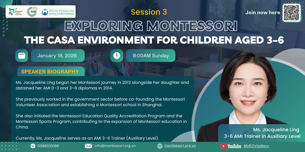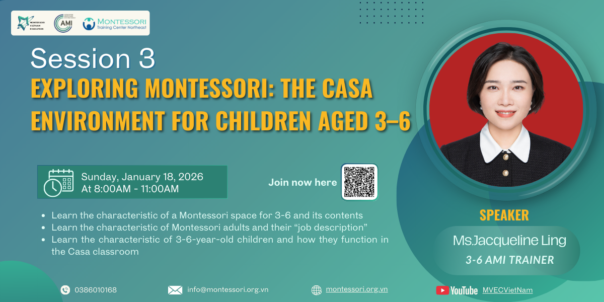 In Session 3 of the MVEC 2025 Talkshow Series – “A Sharing About Children,” the Vietnam Montessori Education Center (MVEC) invites parents and all those interested in education to “meet” the Casa classroom in the most visual and accessible way.