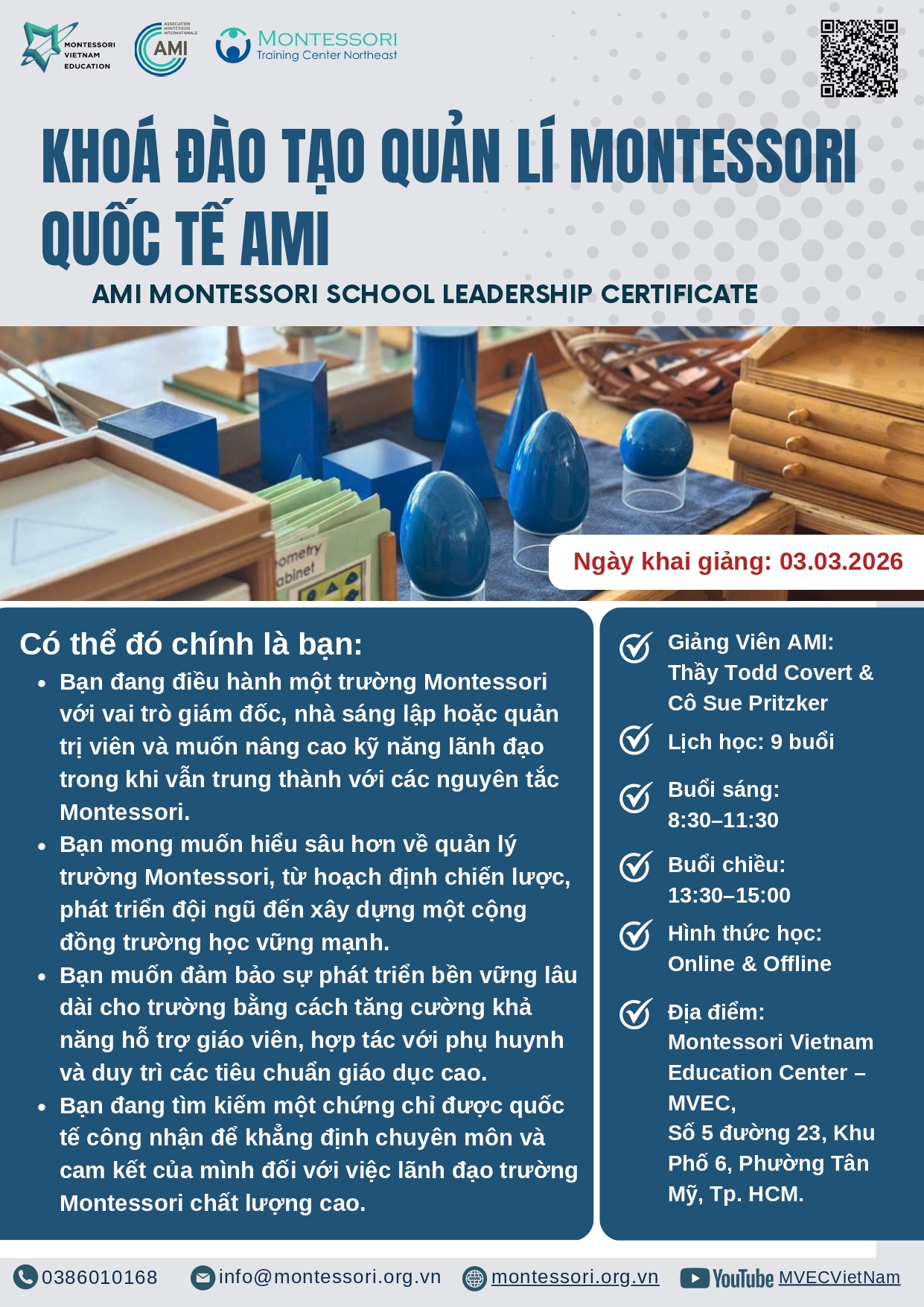 For Vietnamese learners: Professional Vietnamese interpreters with AMI Montessori expertise will provide continuous support throughout the course.